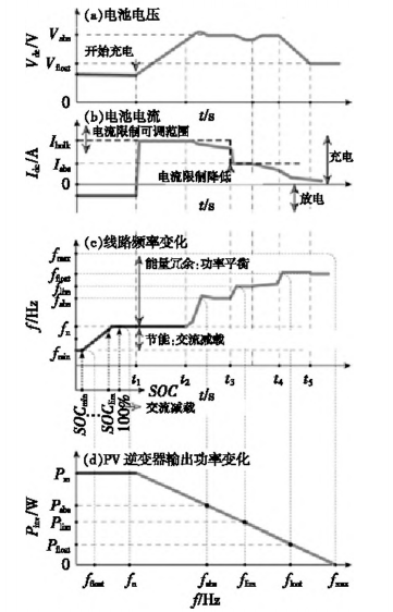 图3为具有线频控制和通信能力的以交流为*心的电力系统中能量流控制的按键波形。图3(a),(b)显示了在电池转换器中实现的多*充电曲线,以满足BES的稳定工作需求。电池转换器将BES的SOC和SOH参数维持在一个稳定的区间。