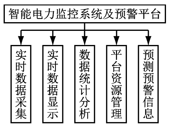 从电力智能监控设计角度出发,分析电力物联网所需要实现的功能基本框架,其目标在确保电力运营正常并且降低电网不必要的损耗。从根本上分析智能电网监控需要实现3个层级的功能,设备监控层、网络传输层和系统分析层。因此,本文初步分析该智能监控软件平台需要初步实现5个基本功能,如图2所示。