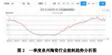 以往节能主管部门一般只能通过企业填报能源利用状况报告、节能监察、能源审计、节能诊断等方式掌握企业历史能源消费数据,具有严重的滞后性和不全面性。能耗在线监测系统的建立,使第一季度泉州陶瓷行业受春节假期影响,行业总能耗呈U型波动趋势,其中2月份总能耗相比1月份环比下降约60%,3月份开始逐步恢复到1月初能耗水平。