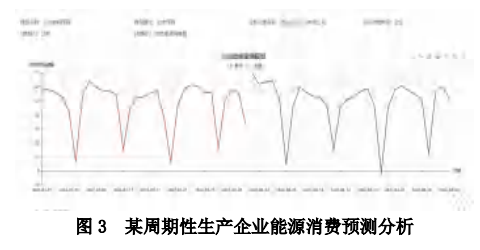 通过汇聚各重点用能企业能源消费的海量大数据,能耗在线监测系统利用人工智能技术构建多种模型,可以用于全省、行业、地区、企业间的能耗和能效数据预测分析。模型的有效性依赖于用于模型训练的数据总量和数据本身的质量,所以在构建模型之前,需要系统提供足够多和足够好的数据。图3是系统对某周期性生产企业能源消费的预测趋势图,可以看出该模型较好地预测了企业未来能源消费趋势。