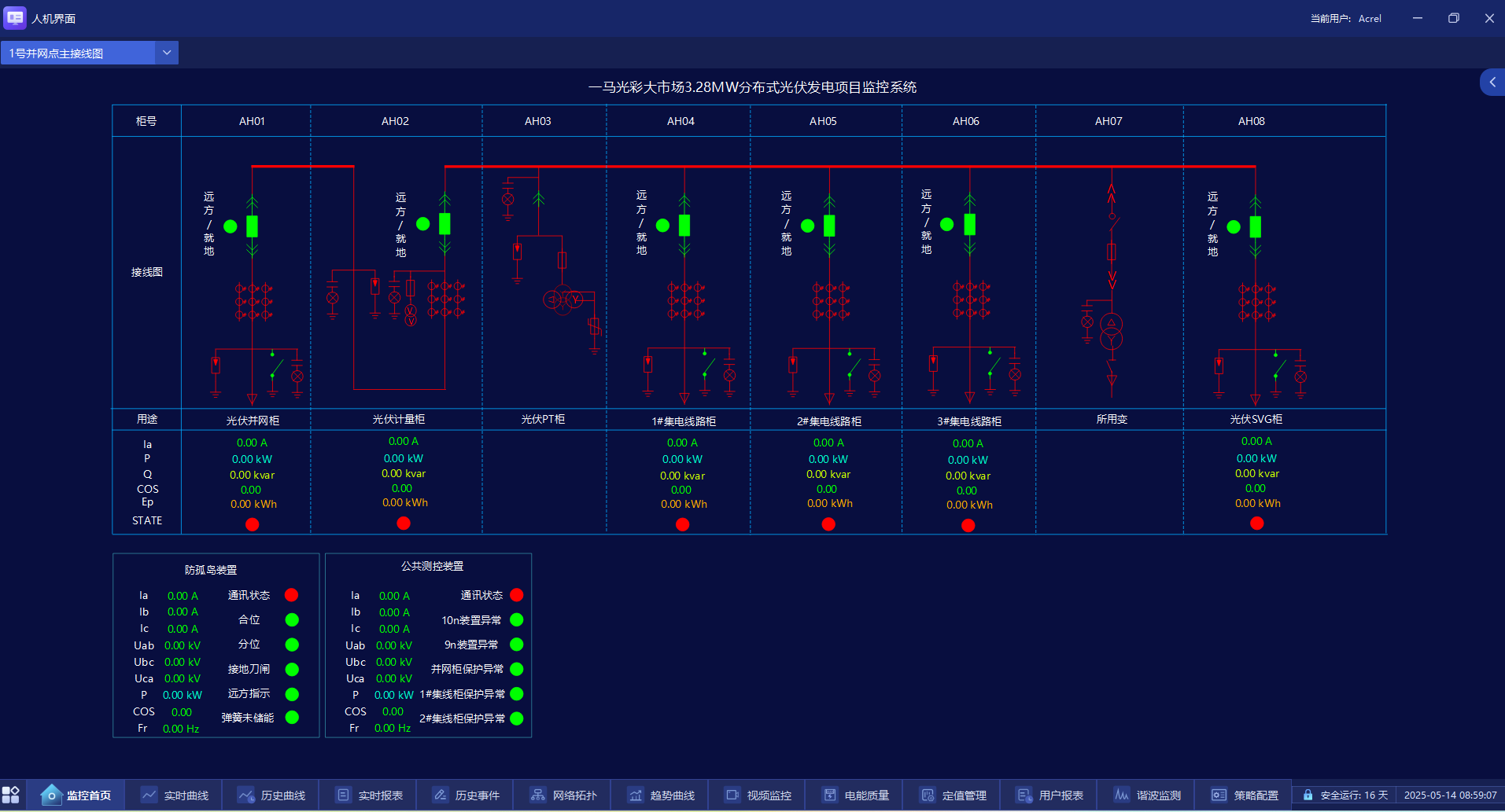监控主操作机台 | Acrel-1000 | 1 | 具有保护、控制、通信、测量等功能,可实现光伏发电系统、开关站的全功能综合自动化管理 |