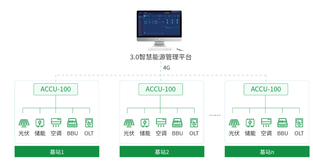 ACCU协调控制器融合了市电、储能、光伏、空调及环境的多维数据,实现基站光储一体机的全景监视。