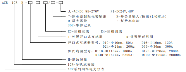开云官方端网站登录入口三相导轨式网络电力仪表型号说明: