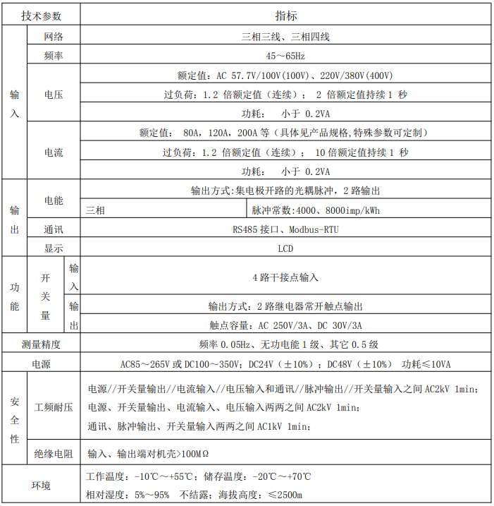 | 工作环境 | -10℃~+55℃ | 应用范围 | 智能配电柜 |