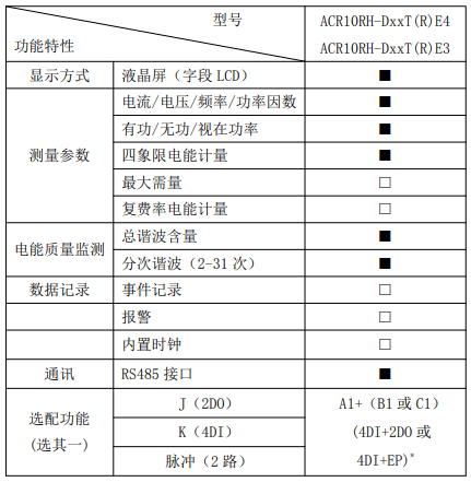四象限电能分别指正向有功电能、反向有功电能、感性无功电能、容性无功电能,一般来说用户读取正向有功电能 EPI;复费率的电能计量分为 2 个时区,一时区为 8 个时段,二时区为 9 个时段(一时区可通过按键和通讯设置;二时区只能在中设置,如出厂已设置为双时区,调整菜单设置费率只能修改一时区的内容,要修改为单时区需通讯设置),4 种费率(F0-有功尖峰电能,F1-有功峰电能,F2-有功平电能,F3-有功谷电能)来完成电能的分时计量。