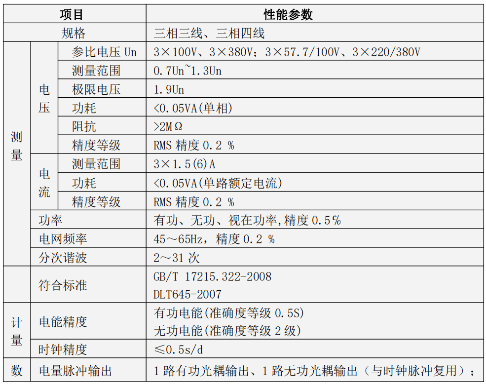 多功能三相电能表的主要功能