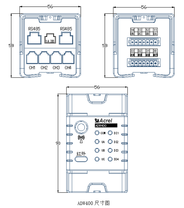 ADW400环保用电监管 多功能物联网仪表主要用于计量低压网络的三相有功电能,同时可选择四个回路的电流输入,具有RS485通讯和470MHz无线通讯功能,方便用户进行用电监测、集抄和管理。可灵活安装于配电箱内,实现对不同区域和不同负荷的分项电能计量,统计和分析。