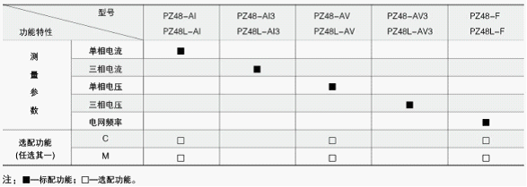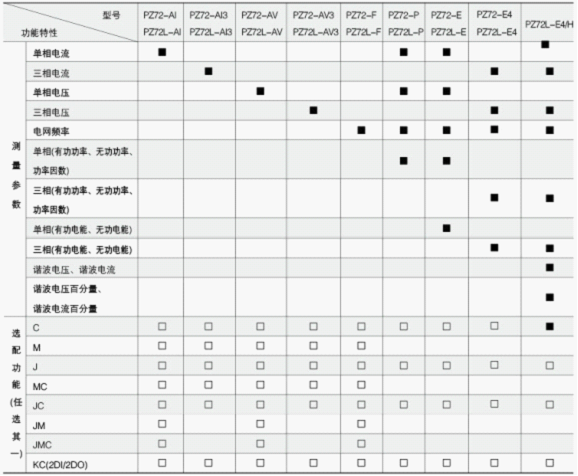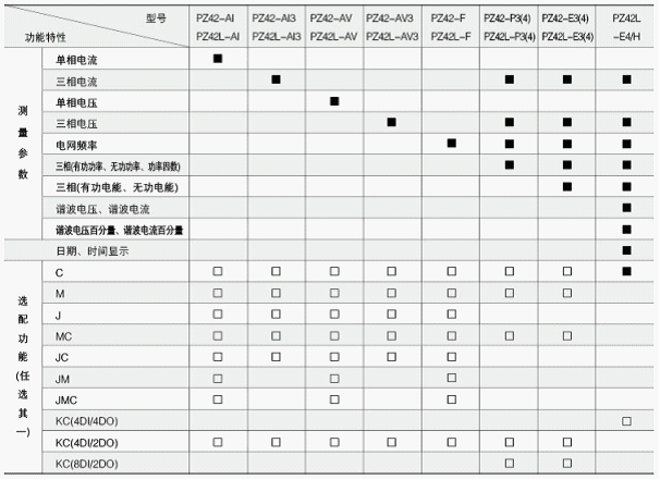 2、PZ96(L)-E3(4)在选配KC(4DI)功能时具备1路有功电能脉冲信号输出端口,在选配KC(2DI/2DO、4DI/2DO)功能时无脉冲信号输出端口;