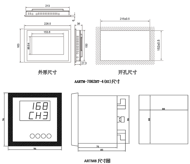 ARTM8温度巡检仪:ARTM系列温度巡检测控仪适用于一路或多路温度的测量和控制,主要应用于火电厂、水电站等场合的温度巡检测量及控制。测量8通道Pt100温度,也可以屏蔽其中任意通道。每一通道温度测量对应2段报警,继电器输出可以任意设置向及报警值。