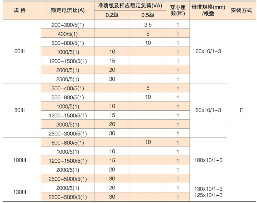 立式方孔型,可穿越1-3根汇流排,不但具有Ⅰ、Ⅱ型的特点,而且可作供电系统计量电能用,以及可与电流继电器配套作保护用。