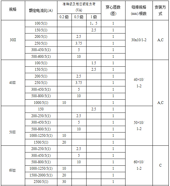 注:额定一次电流的标准值为:10A、12.5A、15A、20A、25A、30A、40A、50A、60A、75A以及它们十进位倍数或小数,有下标线的是优先值。