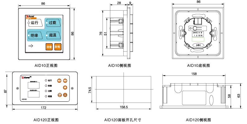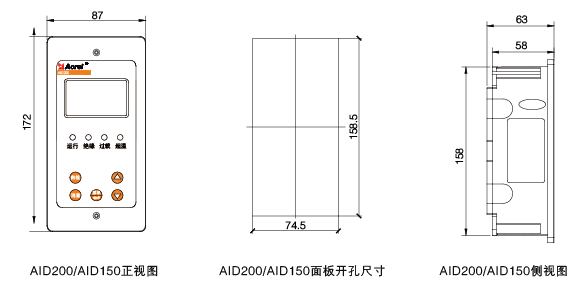 AID系列报警与显示仪是一款采用的现场总线通信技术的远程显示和声光报警装置。能够实时显示AIM-M系列医疗智能绝缘监测仪当绝缘电阻、变压器负荷率等监测数据,并在系统出现故障时发出声光报警信号。也可以通过AID系列报警与显示仪远程设置AIM-M系列医疗智能绝缘监测仪的报警阈值。AID系列报警与显示仪根据安装方式和显示方式的不同共有AID10、AID120、AID150和AID200四个型号。该装置可安装于手术室或重症监护室的信息控制面板上,以便于医护人员了解隔离电源系统的运行状况,以及系统出现故障时的故障类型。