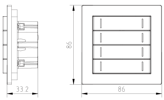 四联八键智能照明控制面板配合驱动器产品外形尺寸: