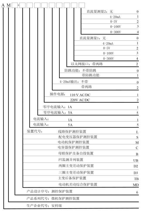 合环保护独立操作回路母联备自投保护装置型号说明: