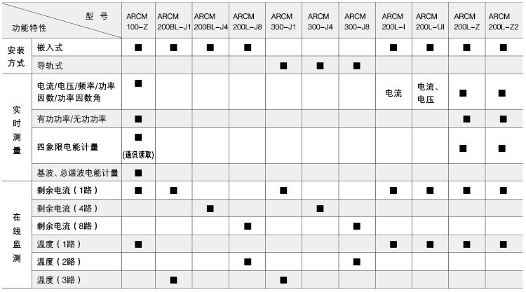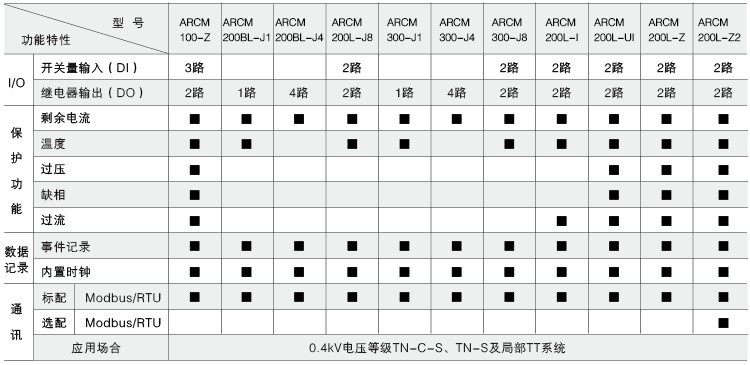 注 : ARCM200L-I: 三相电流监测,过流保护
