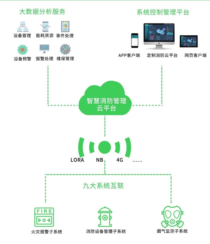 适用于智能楼宇、高层公寓、宾馆、饭店、商厦、工矿企业、国家重点消防单位以及石油化工、文教卫生、金融、电信等领域。