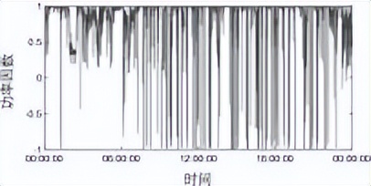 合蚌客专3座牵引变电所功率因数的实测值如图2~4所示。由于牵引变电所供电线路的机车均为交直交型电力机车,牵引变电所功率因数保持在较高的水平,实测值也可以反映这一点,其中功率因数为负值对应的时刻是机车在运行过程中的再生制动工况。