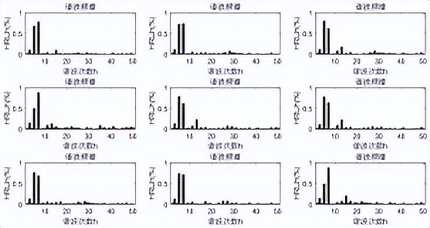 由表3可以看出,刘府牵引变电所B相、水家湖牵引变电所B相、邵岗牵引变电所A相谐波电压总畸变率95%概率值是各相中*大的,谐波畸变率实测曲线如图9、图10、图11所示,谐波电压总畸变率95%概率大值附近9个点对应的频谱如图12、图13、图14所示。