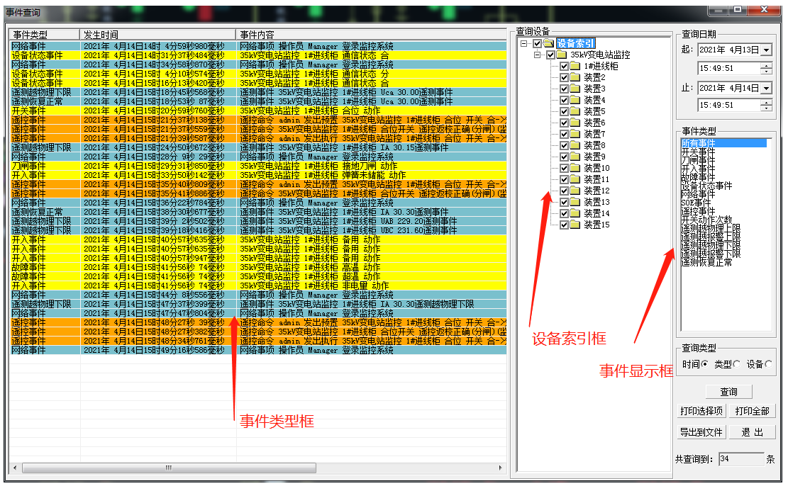 监控系统具有事故报警功能。事故报警包括非正常操作引起的断路器跳闸和保护装置动作信号;预告报警包括一般设备变位、状态异常信息、模拟量或温度量越限等。
