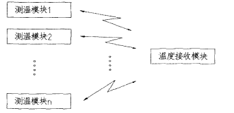 测温无线发送模块,可以1~n个,n小于256个.测温无线接收模块与测温无线发送模块之间采用蓝牙技术的无线传输方式。测温无线接收模块可作成多路,其路数依据要求而定,且具有智能控制的现场总线功能。