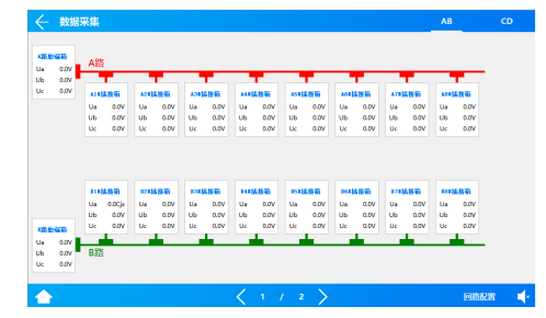 在主页点击数据采集按钮后,进入系统图界面:此界面显示了每个箱子的电压。
