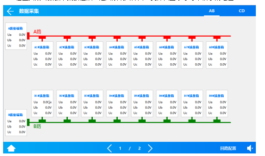 在主页点击数据采集按钮后,进入系统图界面:此界面显示了每个箱子的电压。