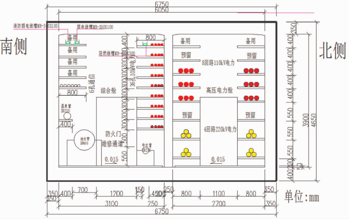 在设计过程中,高压电缆布置在单独的舱中,电压电缆设有阻燃线槽。为保证随着经济发展带来的电力需求变大,在综合舱与高压舱中都设有电力电缆备用支架,避免后续电力扩容带来的综合管廊扩建问题,违背综合管廊设计初衷。