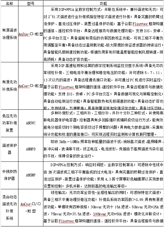 AnSinI系列有源电力滤波装置,以并联方式接入电网,通过实时检测负载的谐波和无功分量,采用PWM变流技术,从变流器中产生一个和当前谐波分量和无功分量对应的反向分量并实时注入电力系统,从而实现谐波治理和无功补偿。