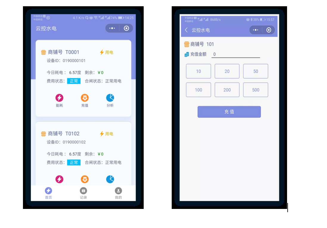 可以对已开户的电表进行远程充值,电费实时下发到电表。电表会根据电度走字实时扣除电费同时系统也支持早台计费,金额下发到系统账户,到账快速稳定。