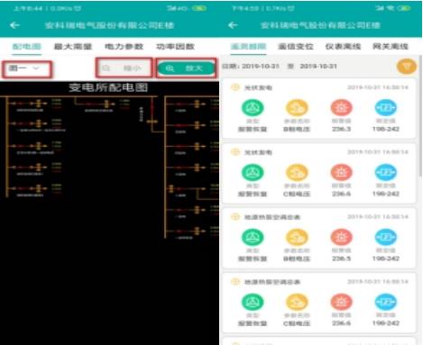 电力运维手机支持“监控系统"、“设备档案"、“待办事项"、“巡检记录"和“缺陷记录"五大模块,支持一次图、需量、用电量、视频、曲线、温湿度、同比、环比、电能质量、各种事件报警查询,设备档案查询、待办事件处理、巡检记录查询等。