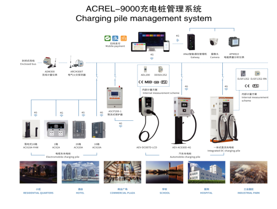 Acrelcloud-9000充电桩收费运营云平台系统通过物联网技术,对接入系统的充电桩站点和各个充电桩进行不间断地数据采集和监控,同时对各类故障如充电机过温保护、充电机输入输出过压、欠压、绝缘检测故障等一系列故障进行预警。云平台包含了充电收费和充电桩运营的所有功能,包括城市级大屏、交易管理、财务管理、变压器监控、运营分析、基础数据管理等功能。智慧充电站综合平台采用分层分布式结构,主要由感知层(终端采集设备)、网络层(通讯管理终端)和平台层(充电桩平台)三个部分组成。