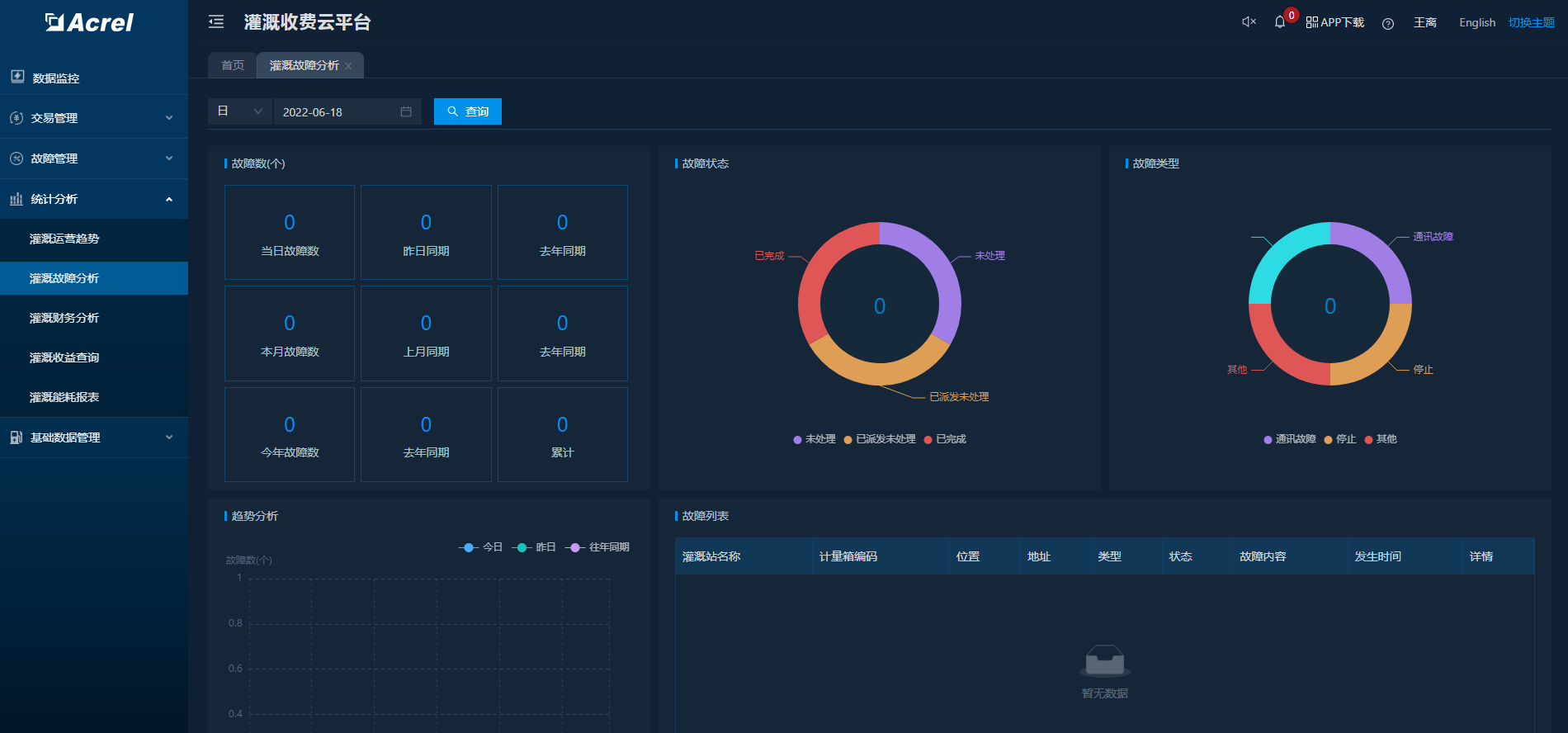 按日/月/季度/年统计故障、充电、设备运行、收益等数据,以曲线、饼图、柱状图、饼图等方式展示统计结果,帮助运维人员各方位掌握运营情况。