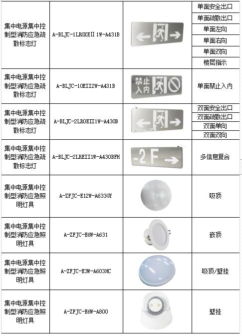 消防应急照明与疏散指示系统由控制器(主机)、集中电源和灯具(疏散指示灯具、应急照明灯具)等几部分组成。因本项目产品过多,此处只介绍主要产品。