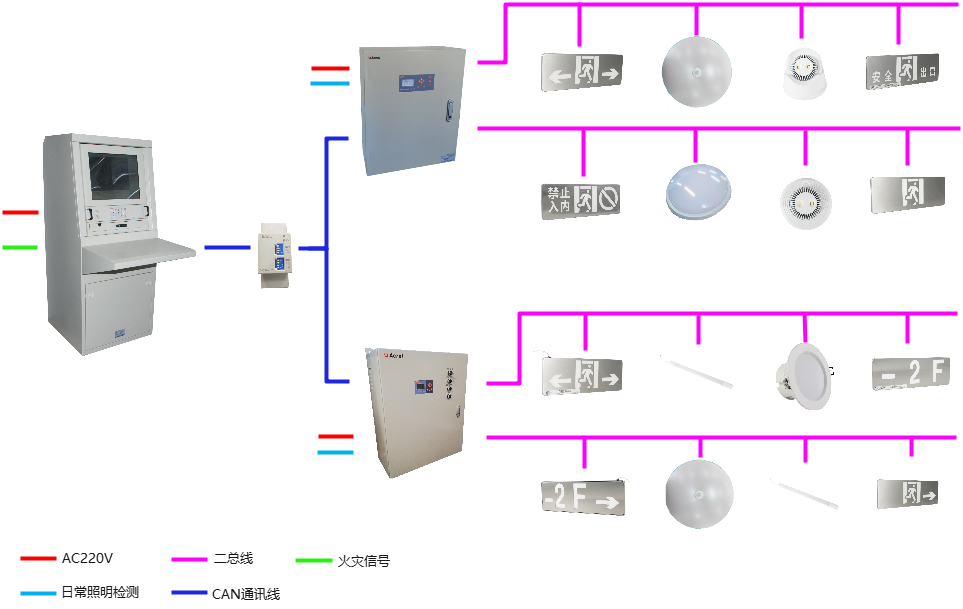 随着经济与科技的迅猛发展,人们开始追求建筑设施的人性化、现代化,大量高层建筑、特大型建筑,及地下建筑的涌现导致建筑物通道更长、更复杂。随着人们安全意识的提高,本着以人为本、生命安全为重的想法,对于人员密集、疏散距离长、疏散通道多、拐弯多、环境复杂的建筑,采用传统的疏散指示方式不能及时对灯具进行维护管理,造成火灾时大面积失效产生人员伤亡。为了避免造成群死群伤,实施迅速有效的应急疏散系统,集中控制型应急照明和疏散指示系统应运而生,可准确实现对各应急灯具的实时监控和控制、日常24小时管理维护,保证系统运行正常,在发生火灾时准确、迅速的引导人员到达安全区域,减少人员伤亡。