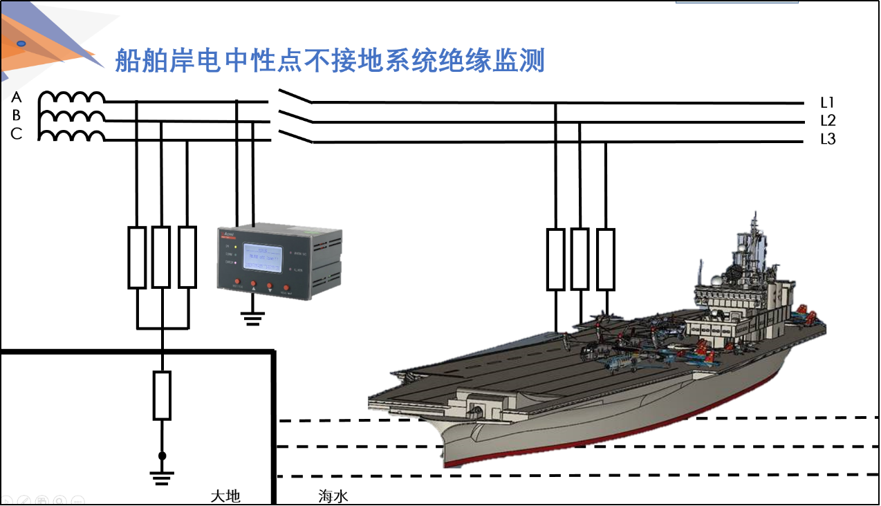 船舶由于其特殊性,对电网要求较高,接岸电时,一方面要采用安全可靠的接地型式的电网供电,另一方面对船舶电网绝缘在线监测问题不能忽视,应注重岸电及船舶的绝缘在线监测。绝缘监测仪的使用,为岸电和船舶的安全可靠运行提供有力的支持。