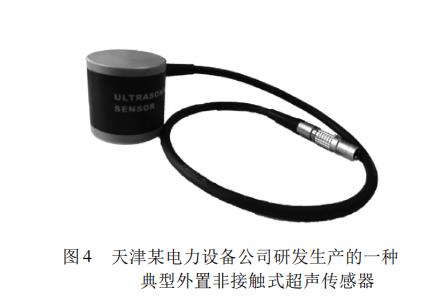 超声波与声波相同,是物体机械振动的传播形式。局部放电是一种快速的电荷释放或迁移的过程,发生局部放电时,局部的电场应力、机械应力与粒子力失去平衡而产生振动,从而产生超声信号。局部放电常伴随着频率高于20kHz的超声波,超声波信号通过不同介质并向四周传播。超声传感器安装在柜内,主要受环境噪声和振动信号的影响。超声传感器安装在开关柜柜体外层噪声较小,然而超声波跨越金属传播时衰减很大,因此超声信号主要通过开关柜外壳缝隙传出,超声传感器安装在开关柜缝隙处检测效果好。超声波传感器利用压电晶体作为声电转化元件将超声信号转换为电信号,并经过进一步放大及信号处理后传输到采集系统进行分析,以达到检测局部放电的目的。天津某电力设备公司研发生产的一种典型外置非接触式超声传感器如图4所示,其采用自吸附式设计,可以方便地安装于开关柜外壳缝隙处,不影响原开关柜运行和结构,中心频率为40kHz,已广泛应用于电力开关柜的局部放电在线监测系统中。