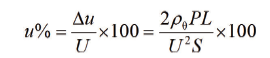 式中:u% 为电压降百分数;Δu 为电压降;P 为线路功率,W;L 为线路长度,m;U 为标称电压,V;S为线路截面,mm2;ρθ 为工作温度为θ 时的导线电阻率,Ω·mm2/m。