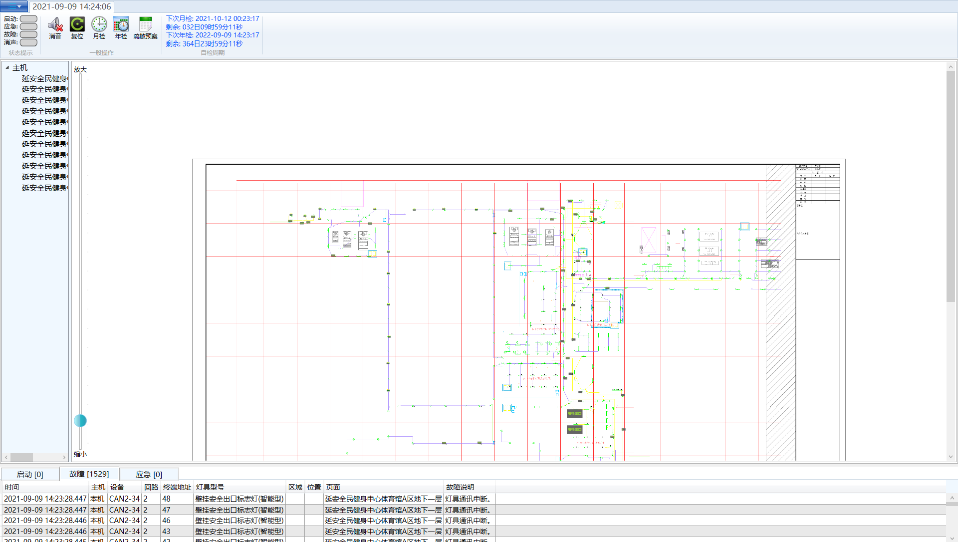 主要由应急启动、应急停止与手动火警组成,应急启动与停止用来测试设备应急功能是否正常,手动火警测试再具体着火点下系统的启动情况。