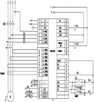 通过电机综合保护器实现现场设备的就地和 DCS 启停、综 合告警和跳闸保护,而且有 4-20mA 电流反馈 。控制和保护回 路如下图所示。