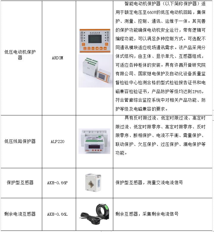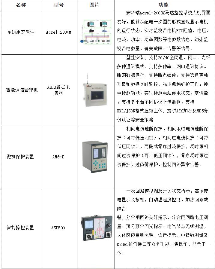我司在河北某钢铁集团,燃气电站脱硫工程,对系统内重要工艺设备、潮湿环境的电机、重载设备均设计配备了电机综合保护器,见下表 :