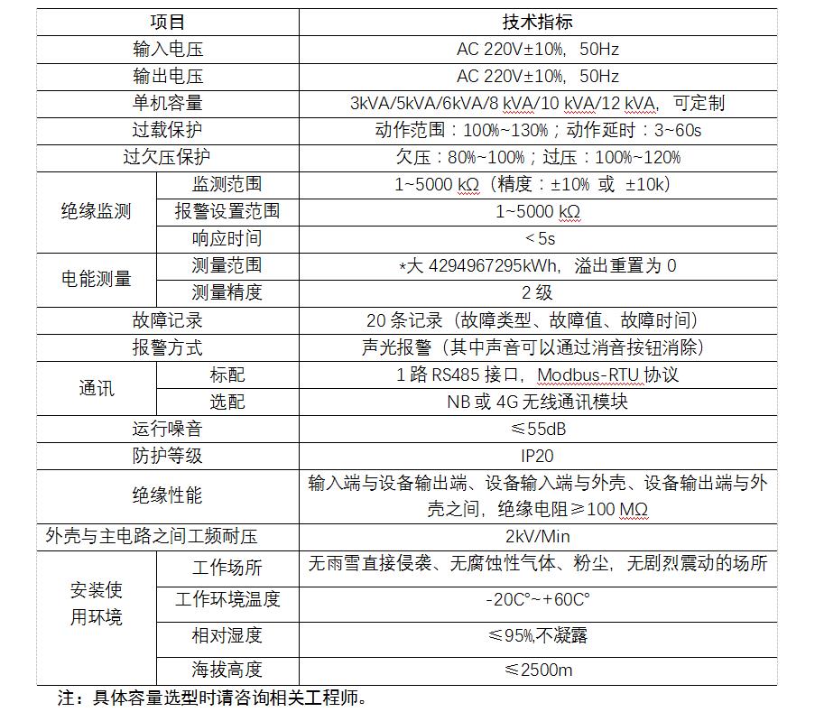 ■保障人身安全。装置限制了负载侧电网的漏电流,人体误触碰到单根供电线路时,能对人 体进行保护,不会造成触电事故。