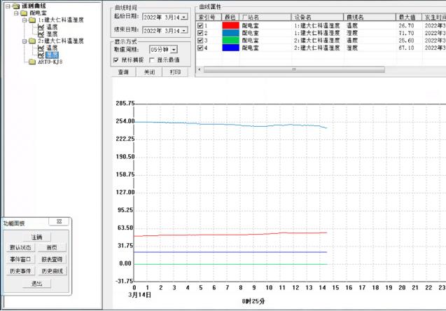 在曲线查询界面,可以直接查看遥测参量曲线,包括温度、湿度、水位、有害气体、电压、电流等曲线。