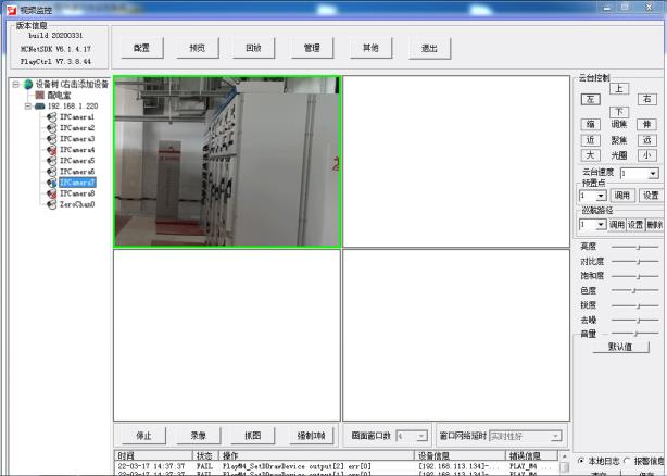 1、摄像机:安装云台球机7台,枪机或半球摄像机2合。视频摄像头(云合机)部署在配电柜前、后的墙壁上,分别对对侧配电柜进行监视。了解设备的运行情况以及方便监控配电房的全景,摄像头(枪机)安装与大门对两侧侧墙上,确保能看到大门前。