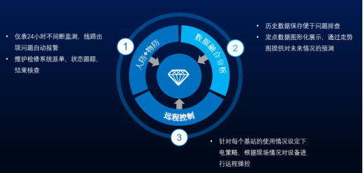 基站智慧用电云平台通过对5G宏站和室分站点加装交/直流智能监控设备、无线采集设备以及系统管理平台,完成夜间无业务时段的下电操作,减少电能消耗,降低运营成本支出,以及提升通信设备供电线路状态的实时监测保护功能;系统后台对存储的供电线路历史电气性能数据进行梳理、汇总、分析,找出故障原因,给出解决建议对策,减少后续同类故障的发生率,提升供电线路运维管控能力。