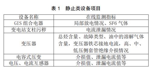 因为电气设备的种类很多,结构也存在很大差别,因此在线监测绝缘相关项目也都不相同。结合传感器与设备等特点差异,研究常见的在线监测静止类设备项目。