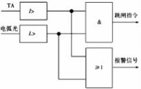 弧光产生断路的危害性极大,弧光会在开关柜内发生爆炸,而燃烧的气体和热能会迅速扩散到周围,并且它还能融化和蒸发金属,由于这些危害,我们才需要一个保护系统。不仅这样,任何设备都需要保护,中低压系统母线也不例外。而电弧光母线的保护系统,是一种针对中低压系统母线的特点经过多位专家研究出来的系统,它具有多种优点,它适用于各种运行方式,在各种运行方式下都不需要人为进行切换就能进行保护,这是一个便利的系统,不仅能起到很好的保护作用,还能提高可靠性,是一个理想型的保护中低压系统母线的解决办法。 3.1弧光的原理 弧光保护的原理,如图 1所示,它的动作判断据为故障时产生的两个条件,也就是弧光和电流增量。在发生故障时,它会检查开关柜,然后,在同时检测到弧光和电流增量时,就会下达跳闸的指令。