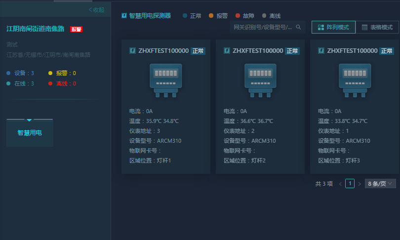直接接入ARCM310仪表,监控每个路灯的电压、电流等电参量进行预警和报警,也可设置定时通断时间并远程控制路灯通断
