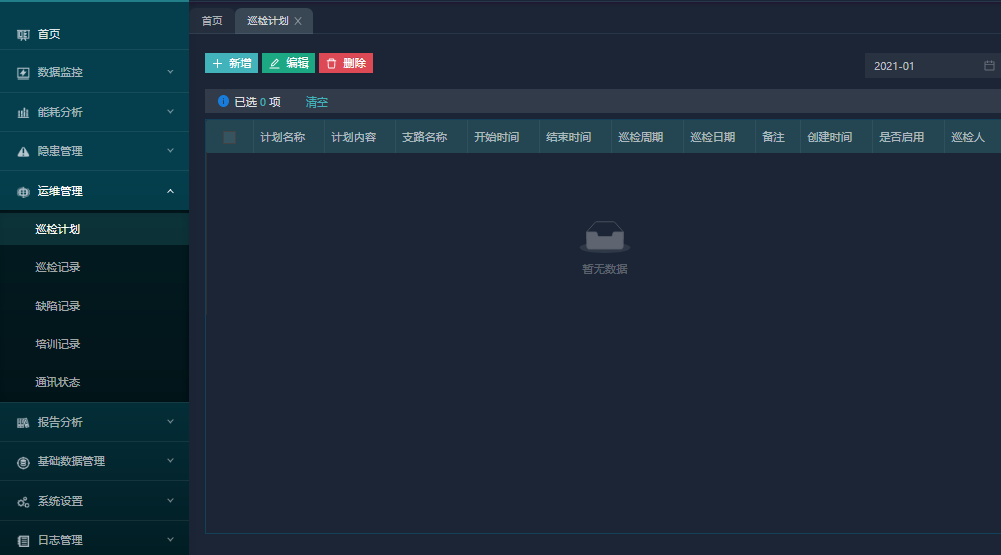 1.监测路灯的开闭,使用时长,非工作时间开启,或开启时间过短,则进行预警;