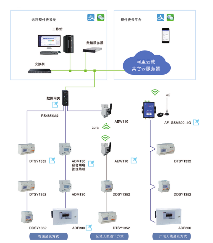 当下智慧校园、平安校园的建设越来越普及,作为智慧校园建设的重要一环,学生宿舍的用电预付费和用电安全管理措施是。学生宿舍预付费电控系统可以解决使用传统电表人工抄表费时费力,不方便统计管理和 充值的弊端,更是为学生宿舍的用电安全也提供了解决方案,消除由于使用恶性负载引起的火灾隐患。系统为B/S架构,主要包括前端管理网站和后台集抄服务,配合公司的预付费电表DDSY1352和DTSY1352系列以及多用户计量箱ADF300L系列,实现电能计量和电费管理等功能。