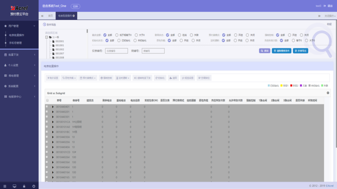 批量操作:系统支持对宿舍进行批量设置,批量初始化、批量下发基础电量、批量设置负控、批量设置时控等,方便学校进行统一管理。